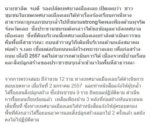 เทศบาลเมืองเลยทวงคืนทางผีผ่าน เหลือบ้านสามหลังยังไม่รื้อออก