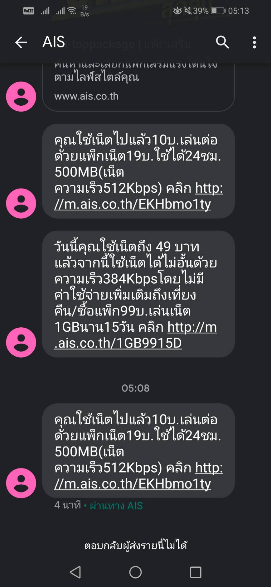 ฉันสมัครเน็ต เหมา เหมา 30 วัน แต่ใช้ไปได้เพียง 6 วัน ระบบส่งข้อความมาแจ้งว่าเน็ตหมด ชาร์จค่าเน็ต เป็นรายวัน 49 บาท x 2 วัน ตื่นเช้ามาเพิ่งได้รับข้อความย้อนหลัง ฉันรีบกดปิดเน็ตทันที