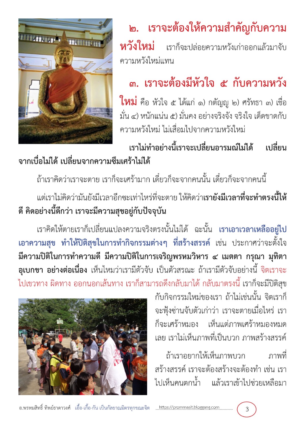 ๑. เราจะต้องมีความหวังใหม่ คือ ความหวังที่ใหม่จากเดิมที่เคยมี หรือเพิ่มเติมจากเดิม สร้างความหวังใหม่ขึ้นมา
