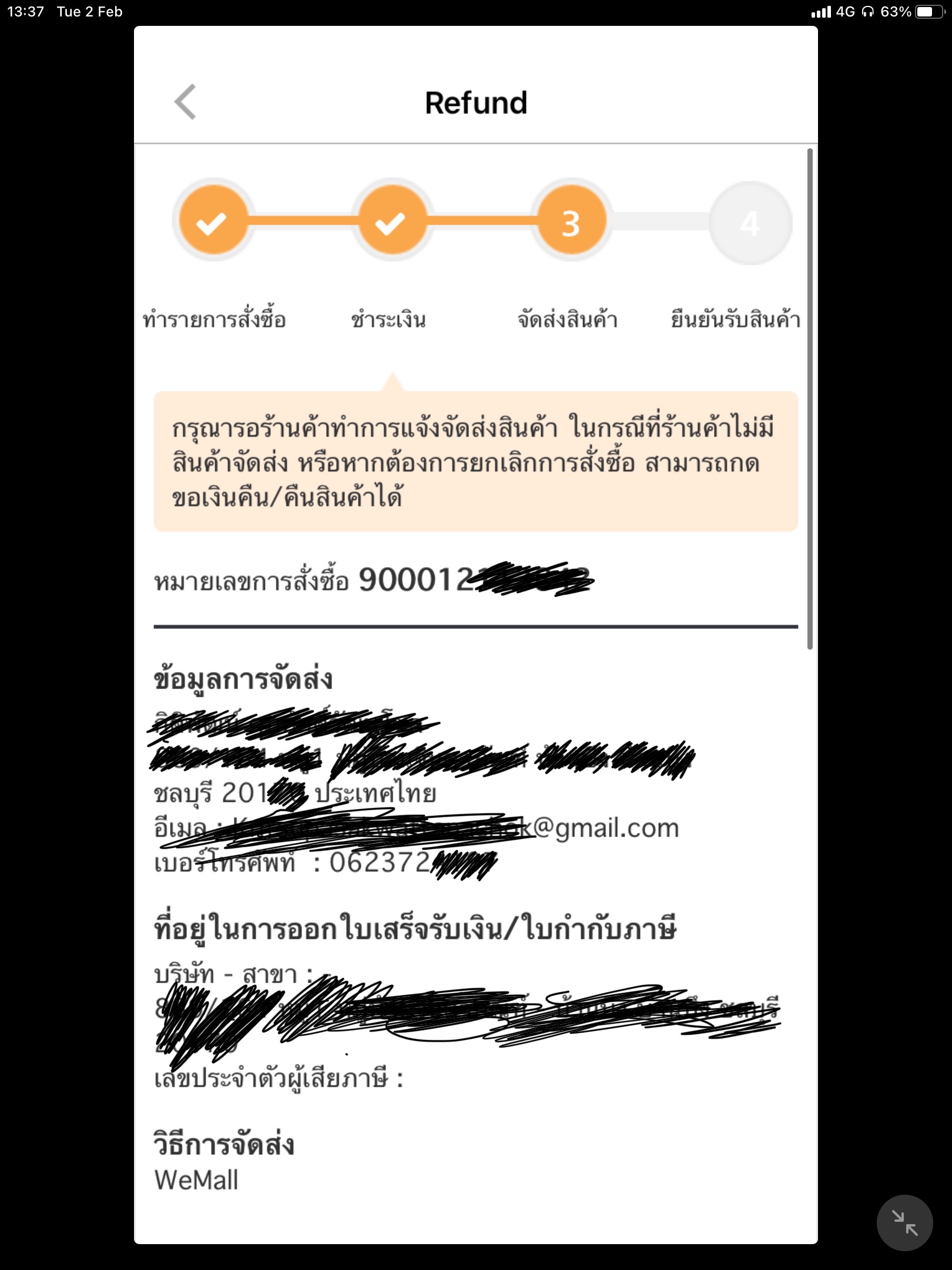 ต่อมา ก็ไล่โทรเช็คกับคอลเซนเตอร์ของ wemall ที่ดูแลการจัดส่ง ก็หาคำตอบมาให้ไม่ได้เลย แล้วตอนนี้ก็เริ่มหงุดหงิดละ อยากรู้ว่า "เมื่อไหร่"