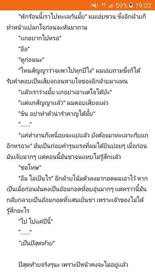 คือเรากำลังทำทรีตเมนต์ของนิยาย มีความยาวของนิยายทั้งหมดอยู่ราวๆ1000หน้า ซึ่งพลอตจะเป็นนิยายวายข้าม 3ภพชาติซึ่งมีการอ้างอิงประวัติศาสตร์จริงของไทย โดยที่จะมีอยู่ชาติภพหนึ่งที่ พระเอกเป็นผู้ชายและนายเอก