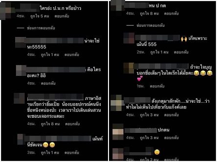ในขณะที่ ชาวเน็ตหลายคนคาดเดาไปต่างๆนานา ว่า "สังเกตมาสักพัก น่าจะใช่ ว่าทำไมไม่เห็นไปเที่ยวกับแก๊งค์เลย
