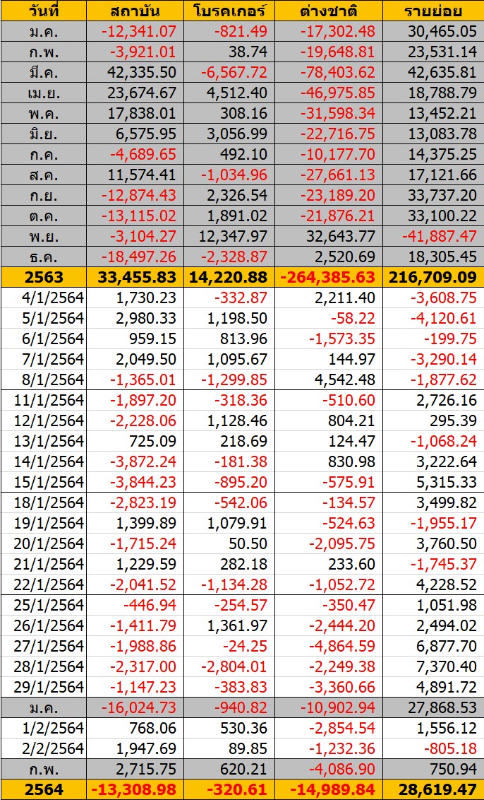 Sinthorn Summary 2/2/2564 : ต่างชาติขายสุทธิ -1,232.36 ลบ.