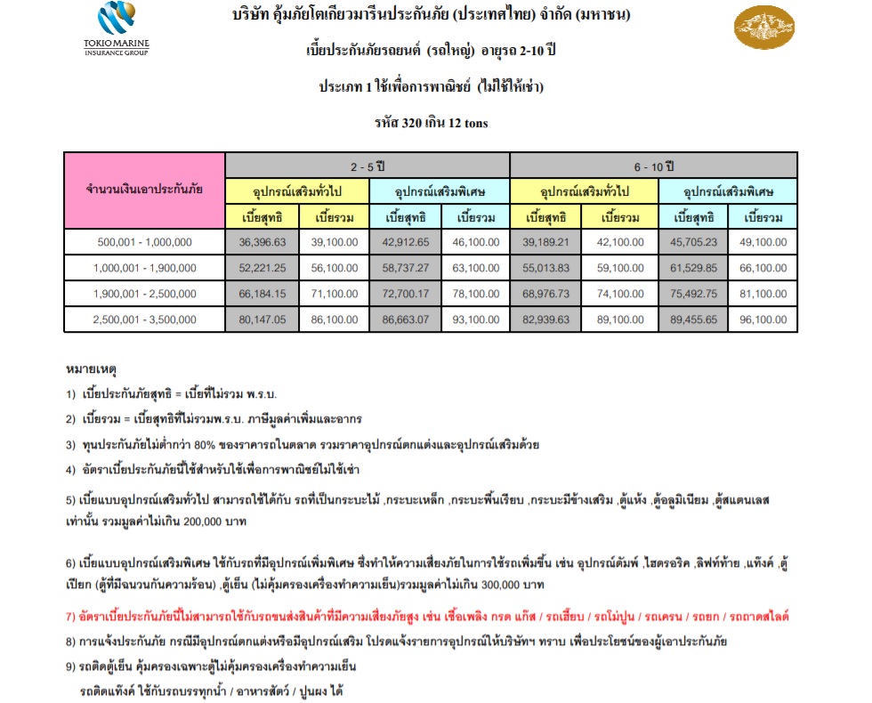 เบี้ยประกันชั้น1 บริษัทประกันคุ้มภัย
