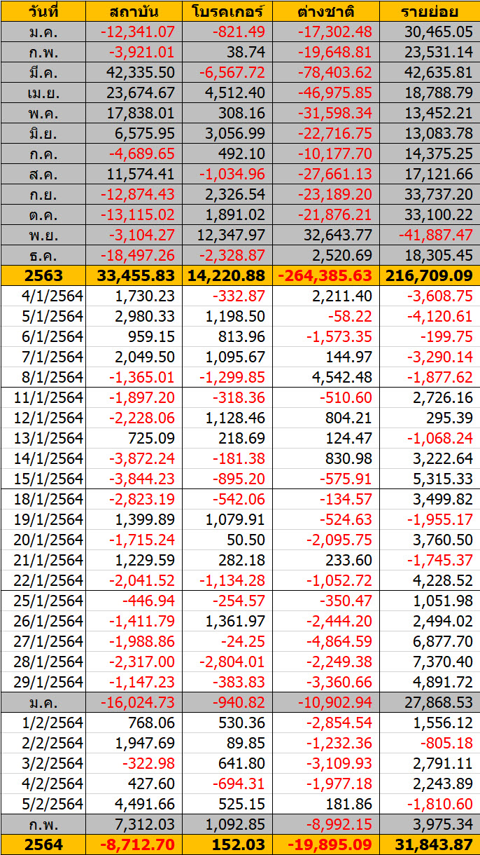 Sinthorn Summary 5/1/2564 : ต่างชาติขายสุทธิ -58.22 ลบ.