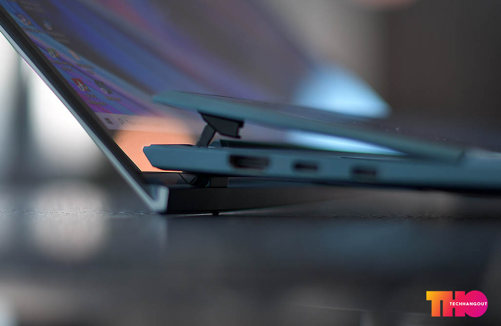 ช่องระบายในส่วนของขอบเครื่องยังคงใส่เข้ามาให้ตำแหน่งคล้ายๆเดิมครับ มาพร้อมกับช่องระบายหลักๆในมุมซ้ายของภาพ 3 ช่องระบายหลัก และการยกตัวเครื่องนั้นจะช่วยให้การระบายอากาศนั้นดีมากกว่าเดิม รวมถึงการยกหน้าจอขึ้นมาก็ช่วยในส่วนนี้ได้ด้วยเช่นกันครับ บอกเลยว่าเป็นรุ่นที่ยกหน้าจอที่ส่งผลทั้งเรื่องมุมมองและการระบายได้ดีมากขึ้นจะเห็นเลยว่าช่องว่างระหว่าง พื้นกับตัวเครื่อง และ ตัวเครื่องกับหน้าจอที่ 2 นั้นยกระดับขึ้นมาเยอะและสูงมากๆเลย