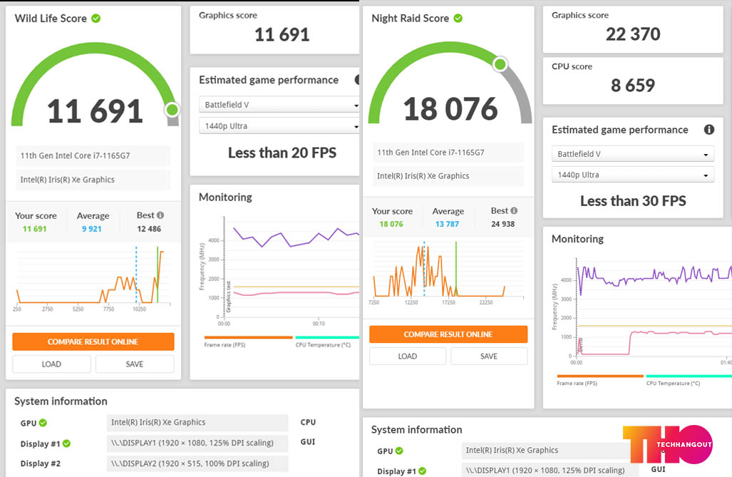 3D MARK นั้นทำคะแนนการทดสอบทั้ง 4 แบบนะครับ ตัว Fire Strike ทำคะแนนได้ 5198 และในส่วนของ Timespy ที่โหดขึ้นมาหน่อยจะทำได้ 1829 และ พวกเริ่มต้นทั่วไปเช่น Wild Life ทำไปได้ 11691 คะแนน และ Night Raid นั้นทำได้ 18076 ต้องบอกว่าผ่านการทดสอบใช้งานระดับกลางๆได้ในแง่ของการประมวลผลแบบ3มิติครับ รองรับได้ระดับเริ่มต้นไปกลางๆอาจจะไม่ได้โหดเท่าไรเพราะการ์ดจอมีแค่ IRIS XE ( MX450 ในตัวขายจริง )ในเรื่องความร้อน แอดมินทดสอบต่อเนื่อง 4 แบบและวัดความร้อนนั้นประมาณ CPU 84 และ GPU 83 ไม่มีแอร์ และ ไม่มีพัดลมเปิดช่วยครับผม จริงๆความร้อนของตัว CPU แอบสูงไปนิดนึงถ้าใช้งานปกติครับแต่ถ้าเปิดพัดลมแรงและเล่นในห้องแอร์จะช่วยได้มากขึ้น