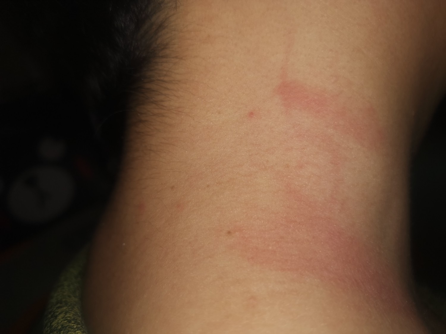 สอบถามหน่อยครับ - ที่คอมีเส้นแดงๆขึ้นเหมือนมีอะไรอยู่ - มีใครพอรู้ไหมครับ