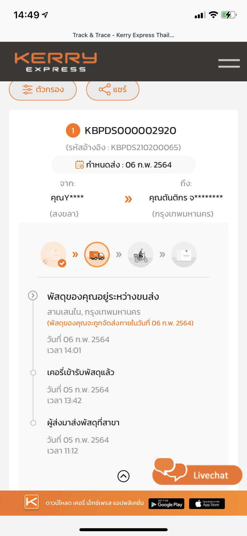 Kerry Express สถานะขึ้นว่า (ที่อยู่ผู้รับไม่ถูกต้อง กำลังตรวจสอบข้อมูลกับผู้ส่ง)
