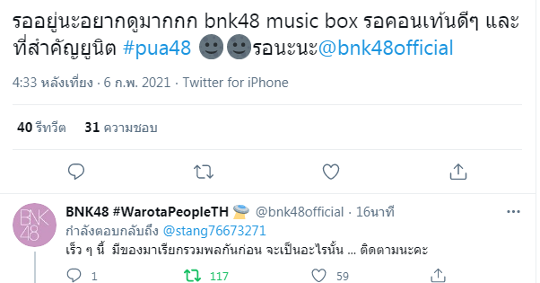 เร็ว ๆ นี้ BNK48 จะมีคอนเทนท์มาเรียกรวมพลกันก่อน รอติดตามได้เลย !!