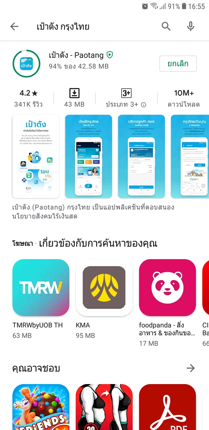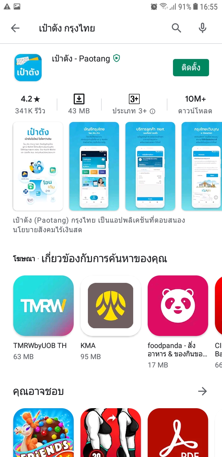 ลบ app เป๋าตังค์ 42 mb เพื่อโหลดใหม่ แต่โหลดแล้วเครื่องไม่ติดตั้งให้ ความจุเหลือ 550 mb เกิดจากอะไร j4+ รอรับ 7000