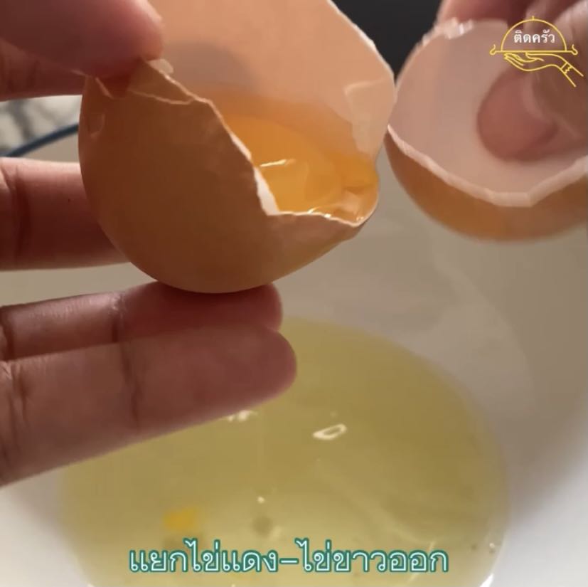 แยกไข่ขาว ไข่แดง ออกจากกัน ใช้ไข่สดจริงๆนะเค้กจะได้นุ่ม