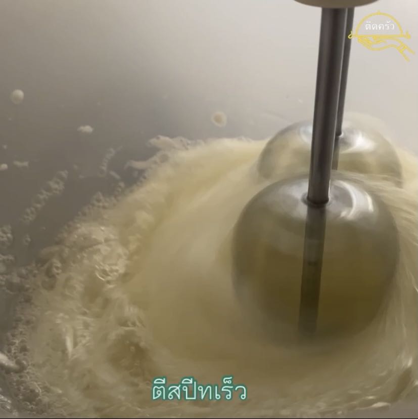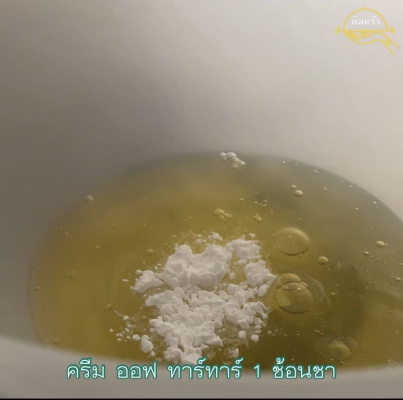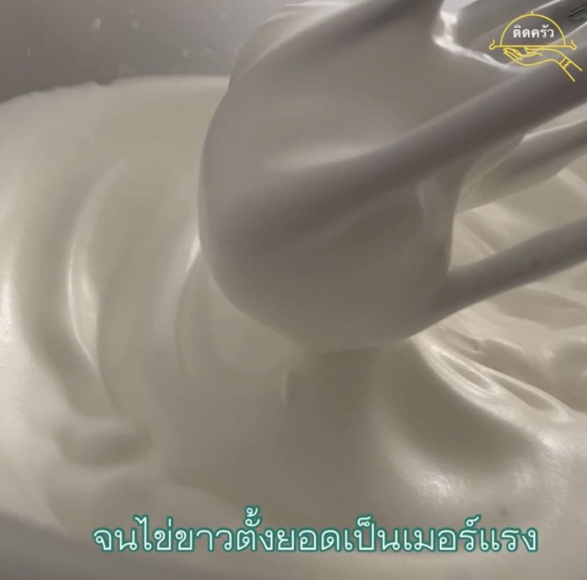 ตีไข่ขาวผสมกับครีมออฟทาร์ทาร์ จนเป็นเมอร์แรง