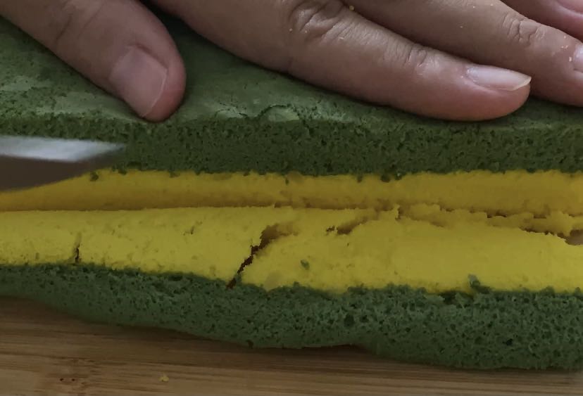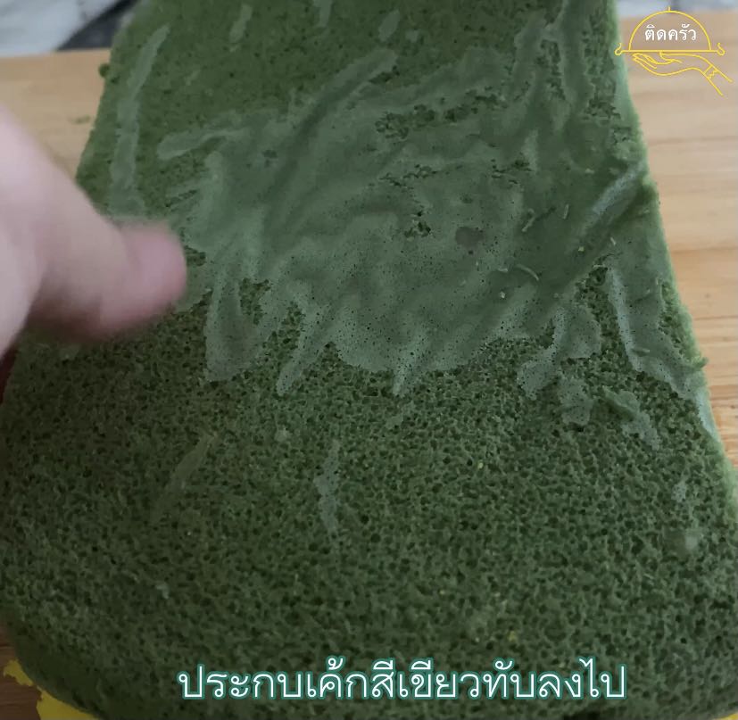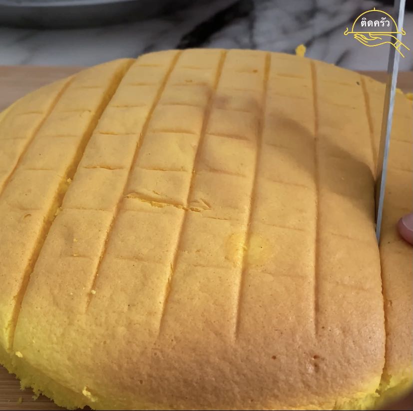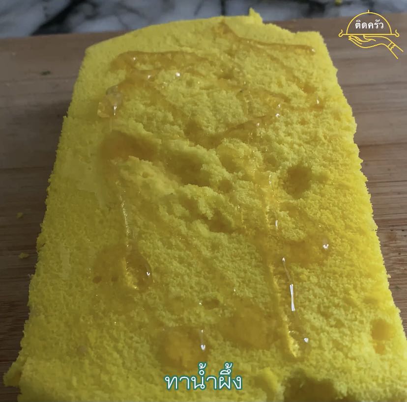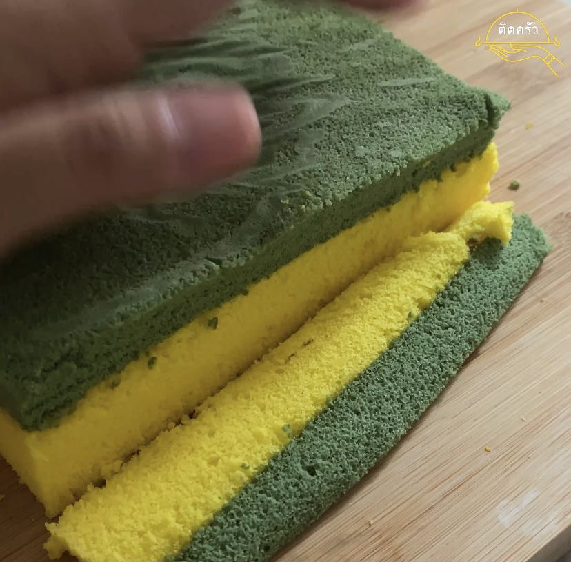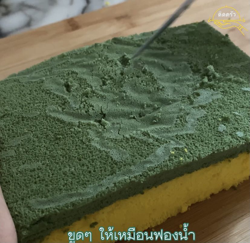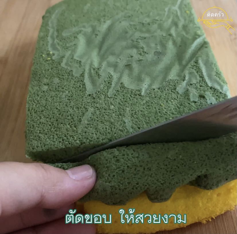 จากนั้นตัดขอบ ตัดแต่งให้เหมือนฟองน้ำ