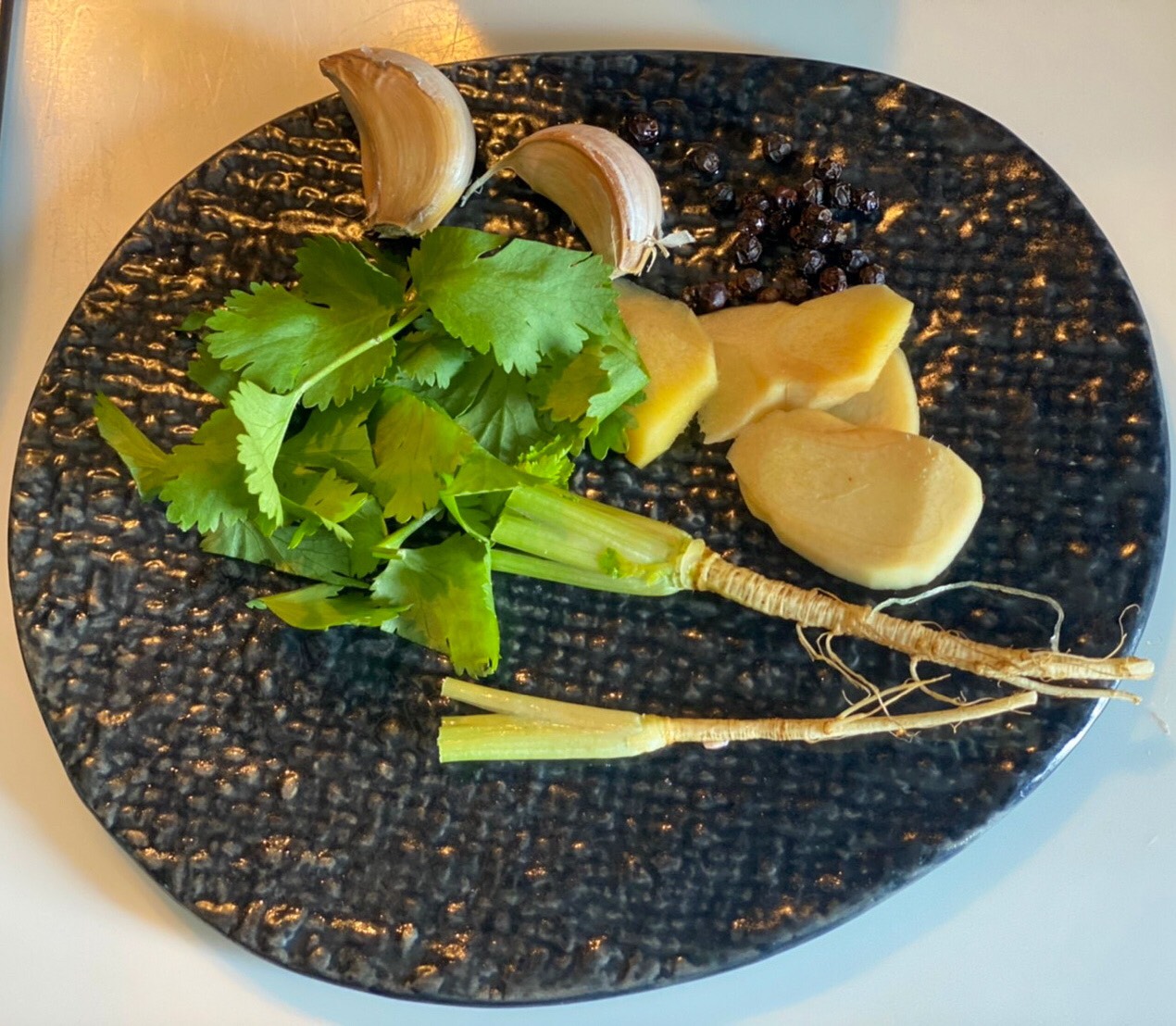 3.เตรียมเครื่อง ขิง เมล็ดพลิกไทย รากผักชี กระเทียม