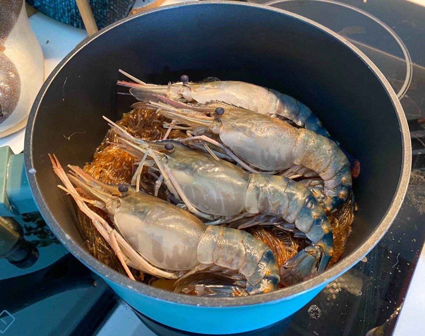 กุ้งอบวุ้นเส้นทำเอง ใช้กะทะ แทนหม้อ อบง่ายๆ