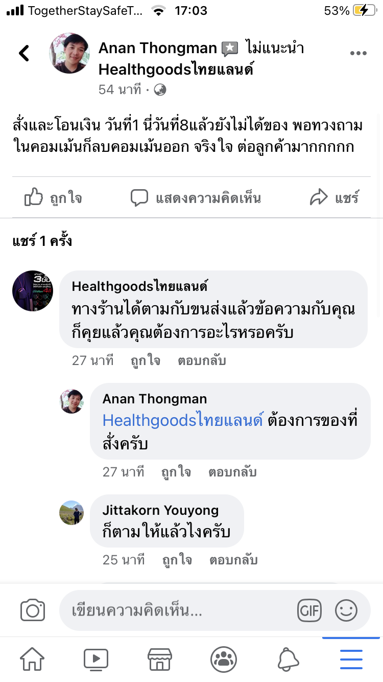 แล้วทางเพจให้เราติดตามสินค้าเอง อ้างแต่ว่า ส่งสินค้าแล้ว