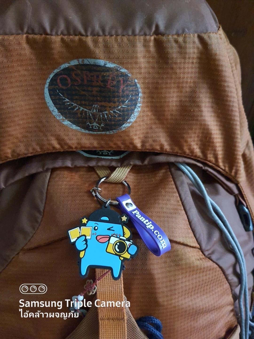 พอดีวันนี้น้องให้พาไปดูเส้นทางท่องเที่ยว เส้นโขงเจียม จะไปนอนบ้านพ่อใหญ่หมอน เลยเอาพวงกุญแจน้อง pantip มาแขวนที่เป้ตัวเก่ง เพื่อออกเดินทางด้วยกันเป็นครั้งแรก