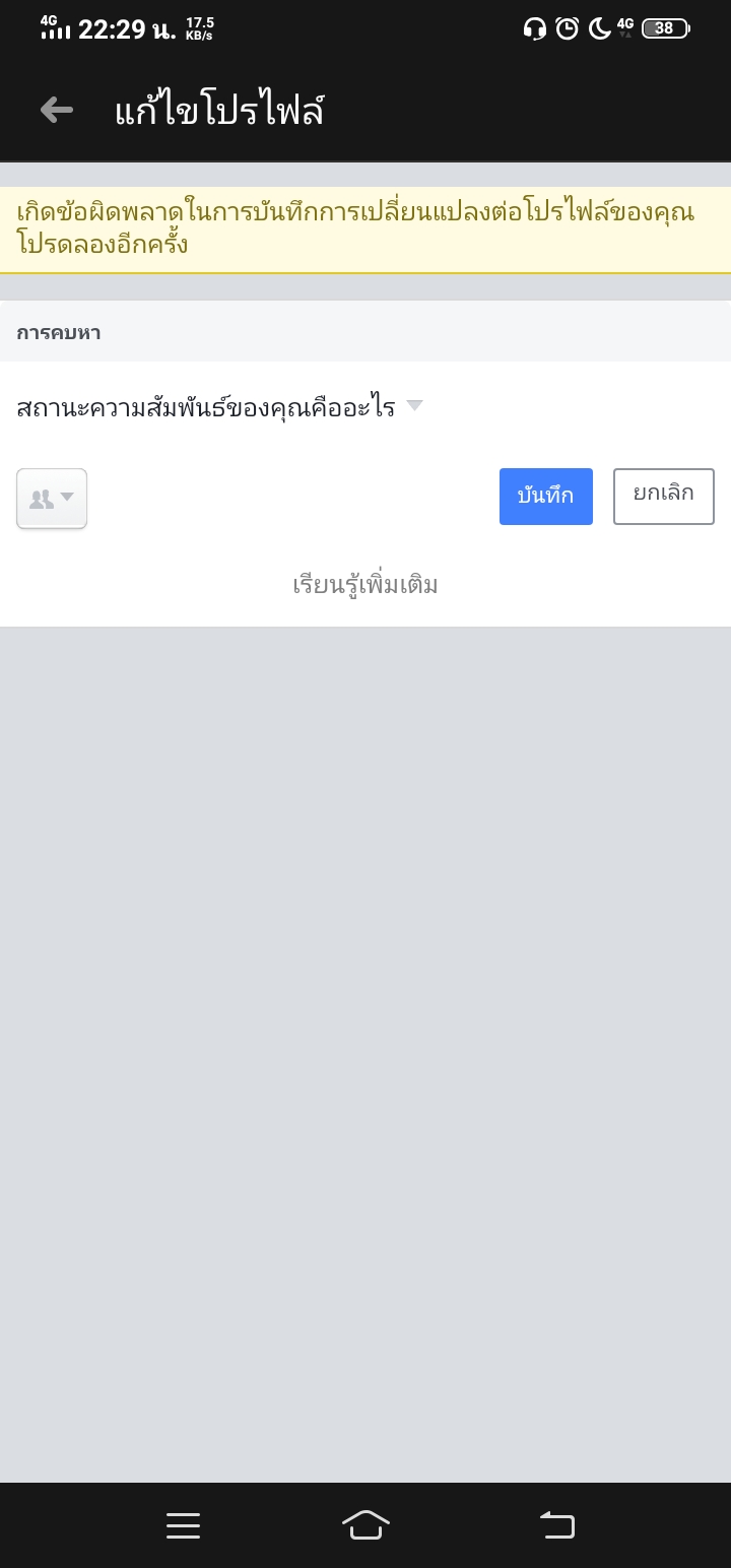 ตั้งสถานะความสัมพันธ์ใน facebook ไม่ได้?