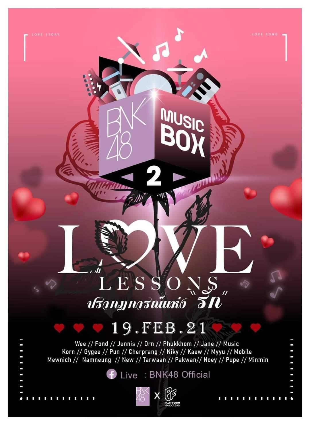 𝐃-𝟑 ––––––––––– BNK48 Music Box 2: Love Lessons 19 FEB 2021 , 18:00 onwards #BNK48 #BNK48MusicBox2 #ปรากฏการณ์รัก #LoveLessons http