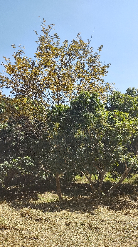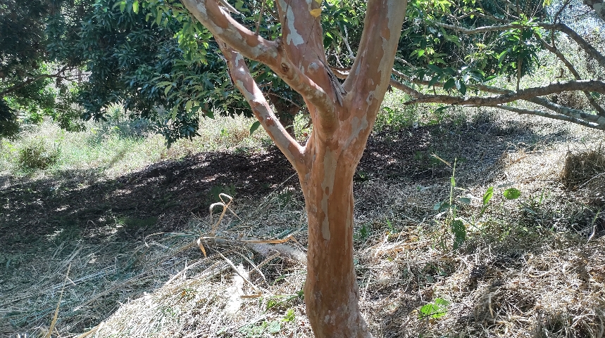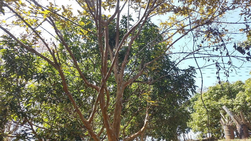 ขึ้นเองครับ มีอยู่ 2-3 ต้น ลักษณะใบเรียบมันไม่มีขน ขยี้ใบลองดมดูกลิ่นออกเปรี้ยวฉุน กลิ่นคล้ายใบมะม่วงครับ อันนี้เป็นลำต้นของมันครับ เคยตัดทิ้งไปรอบนึงแล้วมันแตก