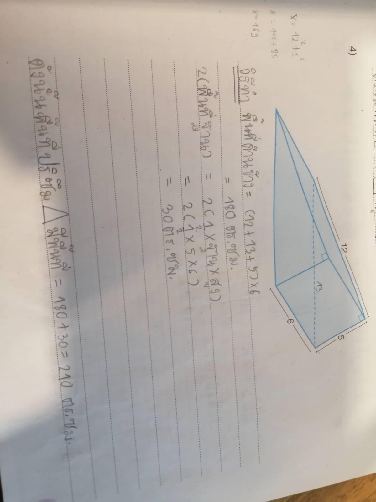 ช่วยตรวจหน่อยครับว่าถูกหรือไม่(น่าจะผิด)การหาพื้นที่ปริซึม