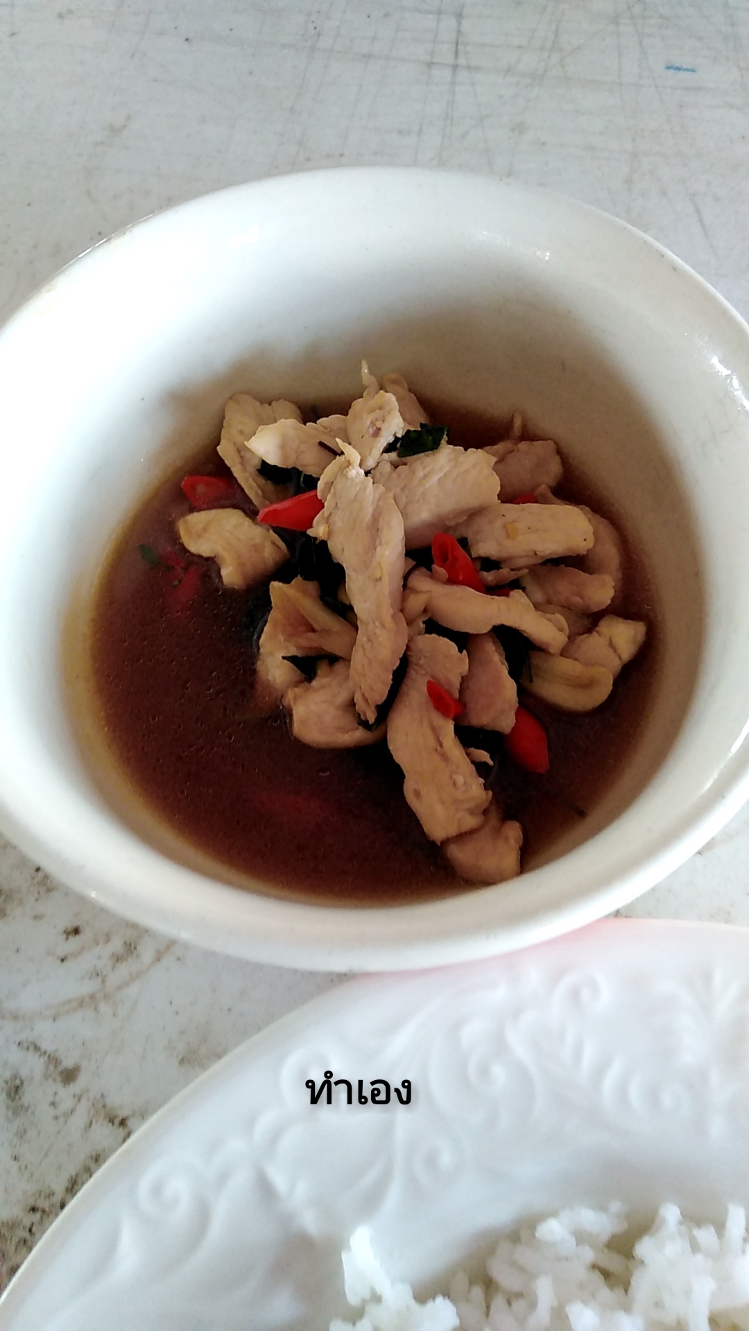 ในรูป ทำเอง กะเพราะไก่ งบ10บาท