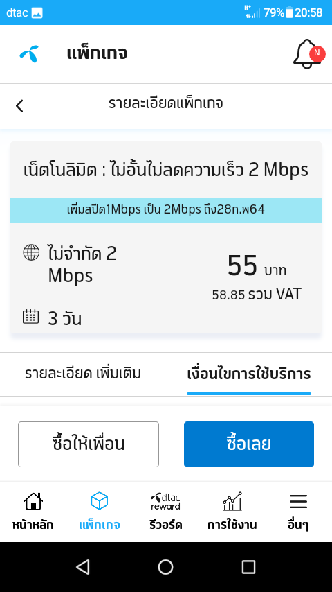 สมัครแพ็กเกจเน็ตดีแทค ครับ