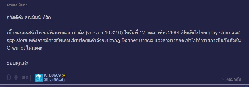 วันนี้ App Poatang verion 10.32.0 ยังไม่พร้อมหรือครับ ?