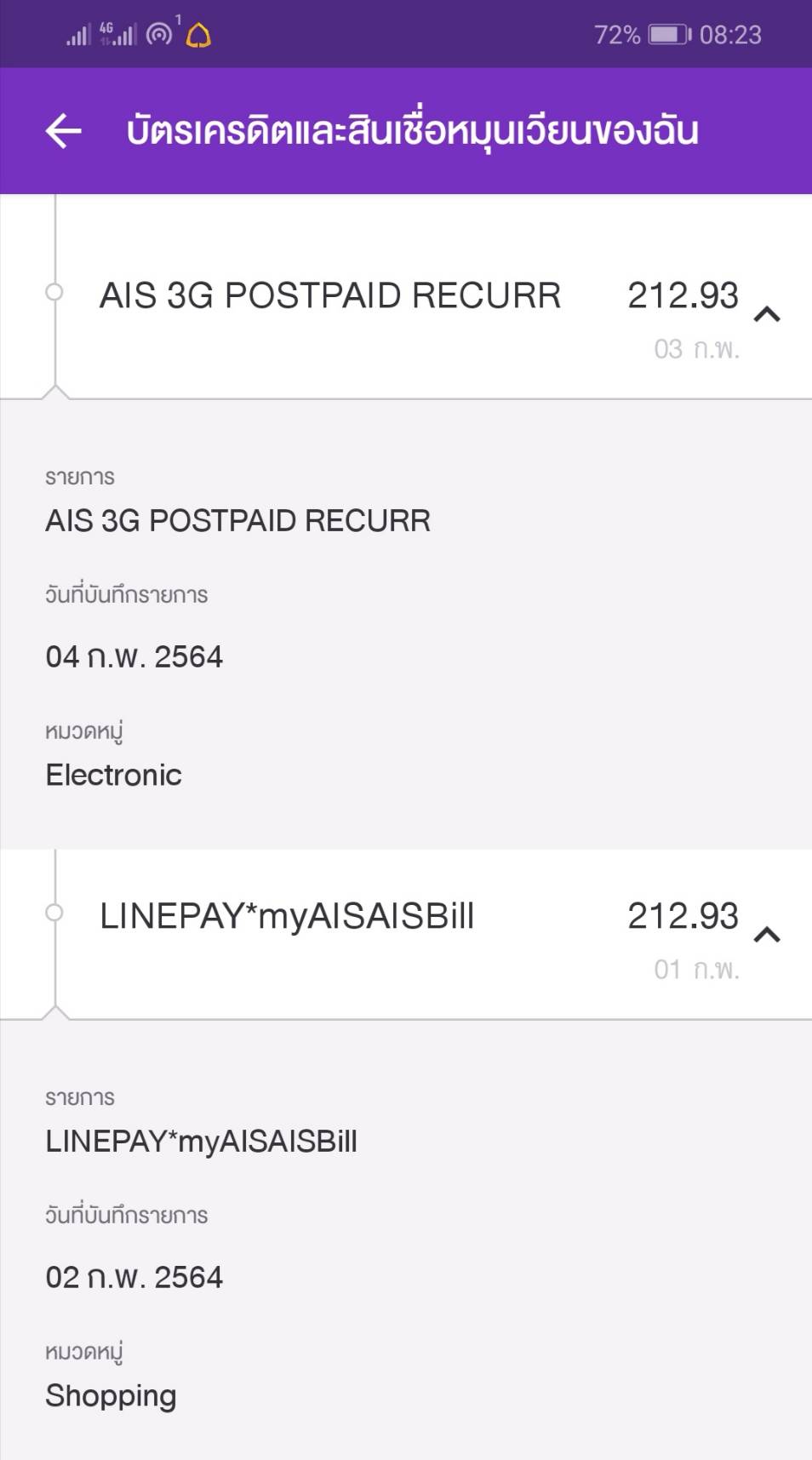 - วันที่ 1 กพ ผมจ่ายเงินบิลเดือน มค ล่าสุด ไปและแคปจาก my AIS