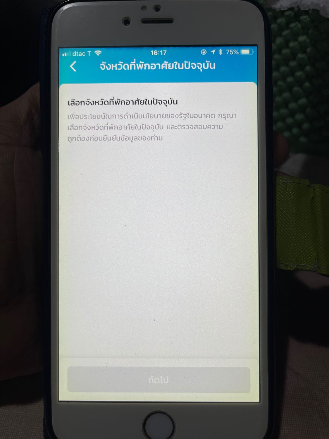 พอกดติ๊กถูกยินยอมเงื่อนไข มาถึงหน้าเลือกจังหวัด ไม่ขึ้นอะไรให้เลือกเลย ปิดแอพก็แล้ว อัพเดทเวอชั่นล่าสุดก็แล้ว