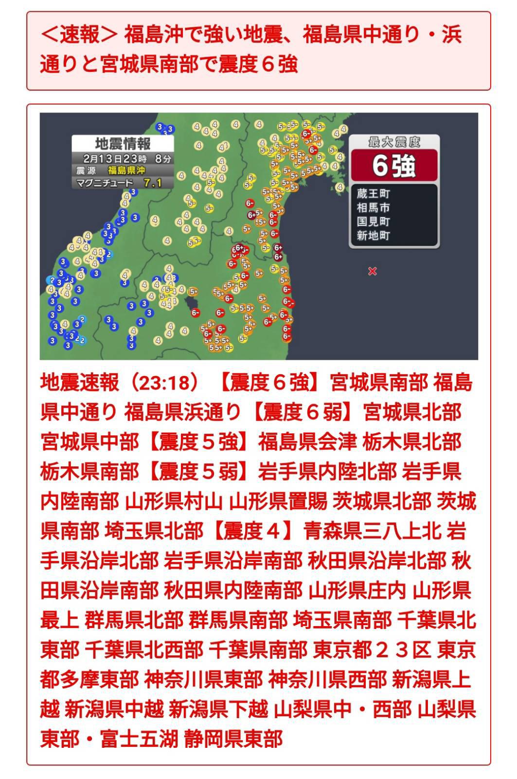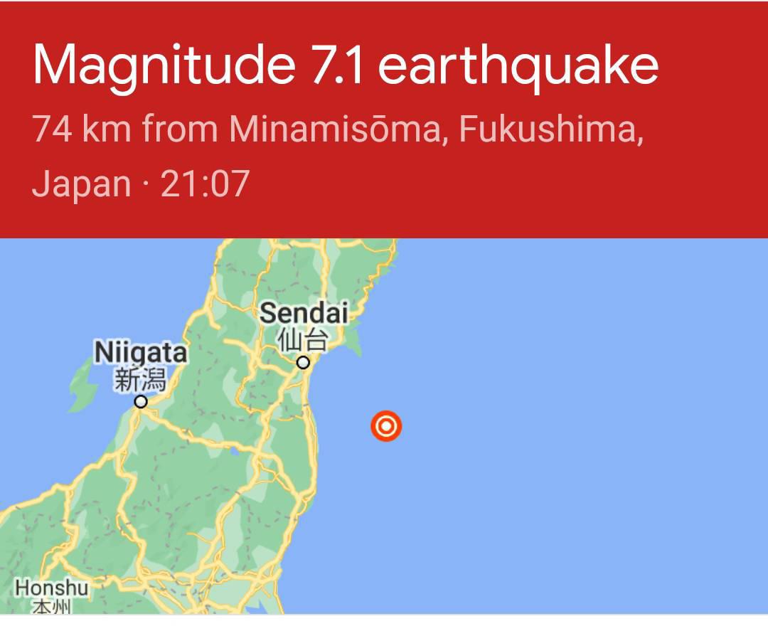 แผ่นดินไหวนอกชายฝั่ง Fukushima M7.1