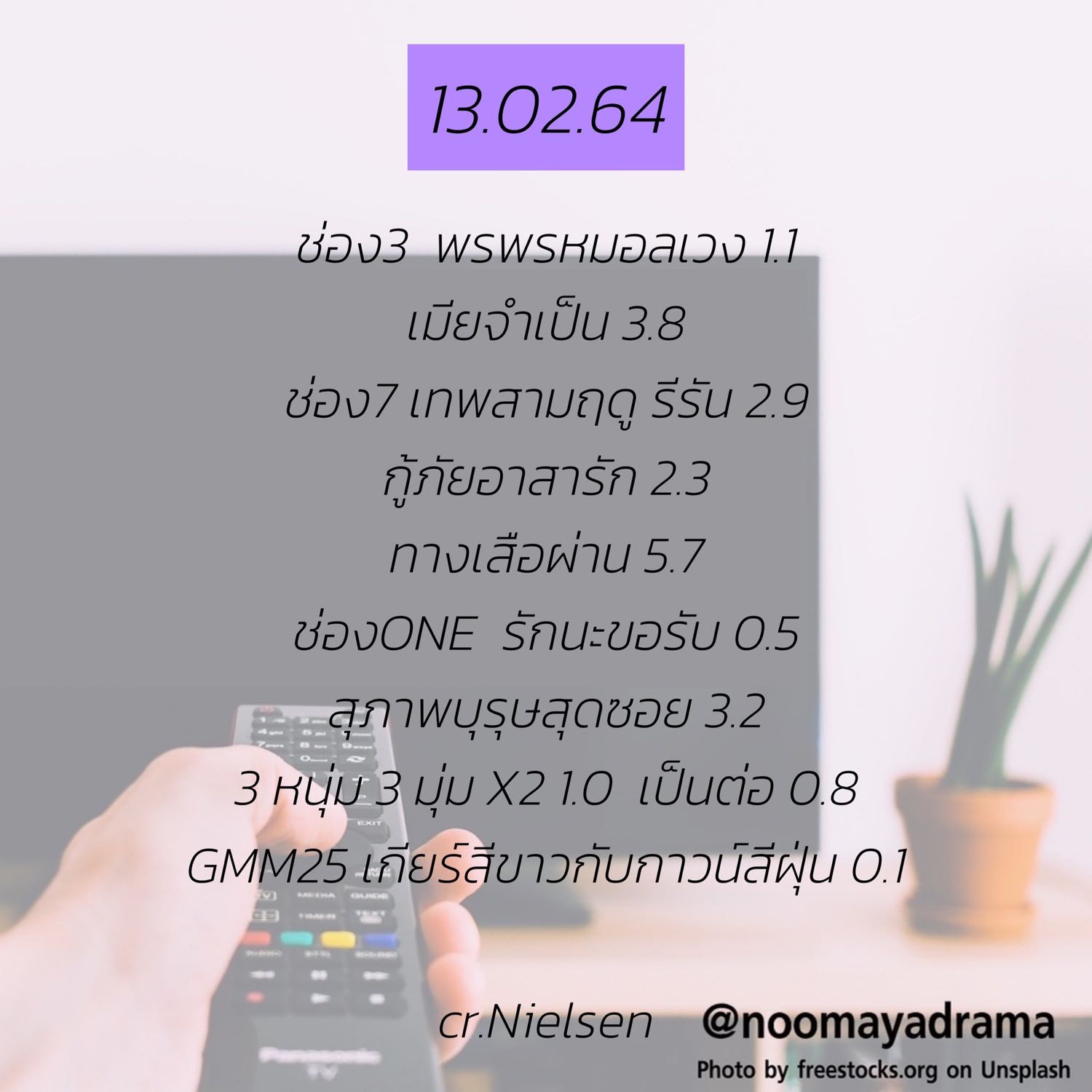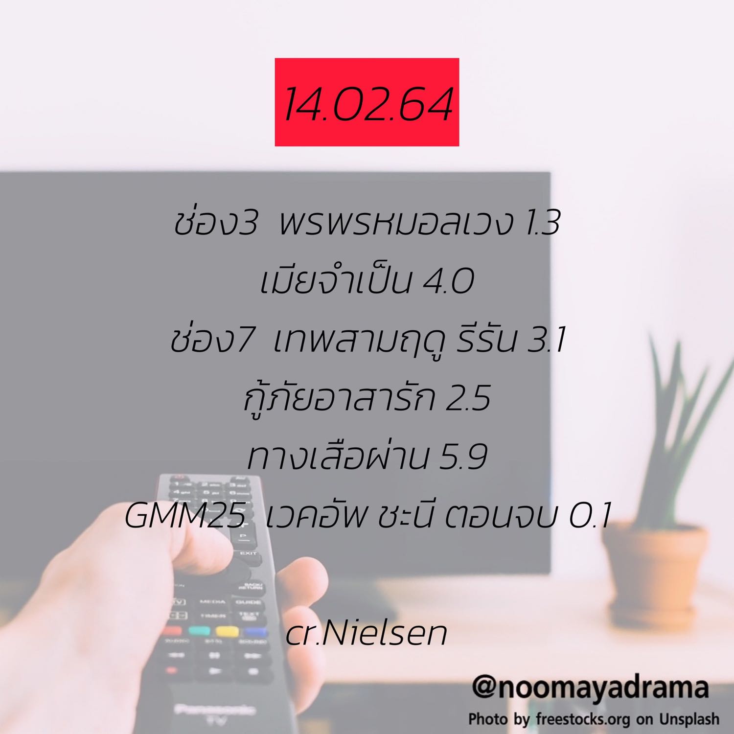 เรตติ้งละครประจำวันที่ 11-12-13-14 กุมภาพันธ์ 64