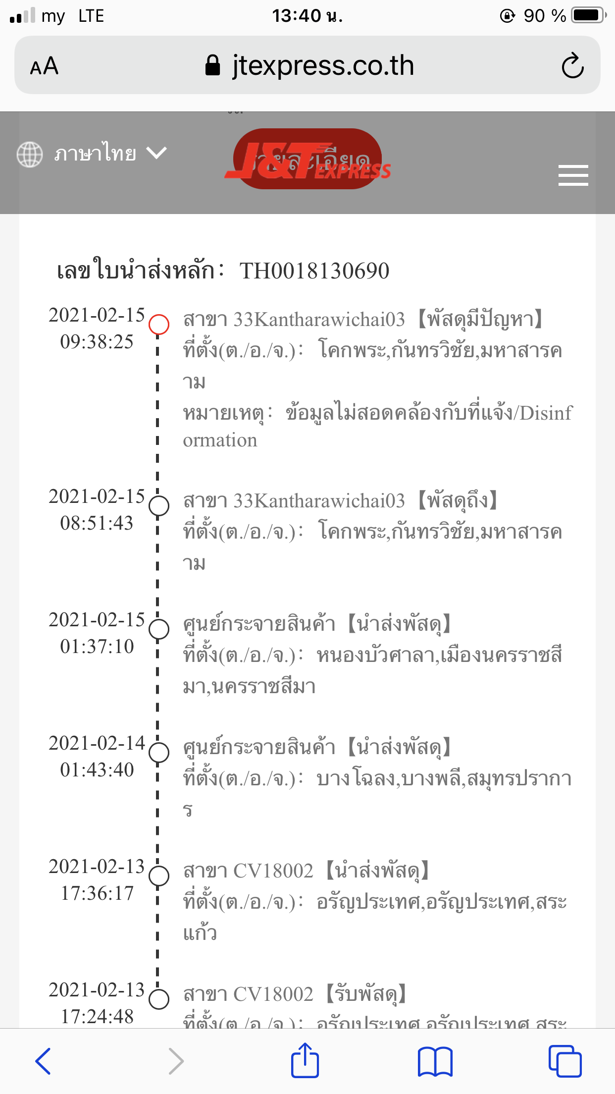 พัสดุมีปัญหาแบบนี้ต้องรอกี่วันถึงจะได้ของคะ