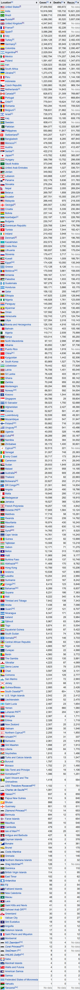 ตัวเลขผู้เสียชีวิต 2,414,569 ราย มีอัตราการเสียชีวิตอยู่ที่ 2.2%