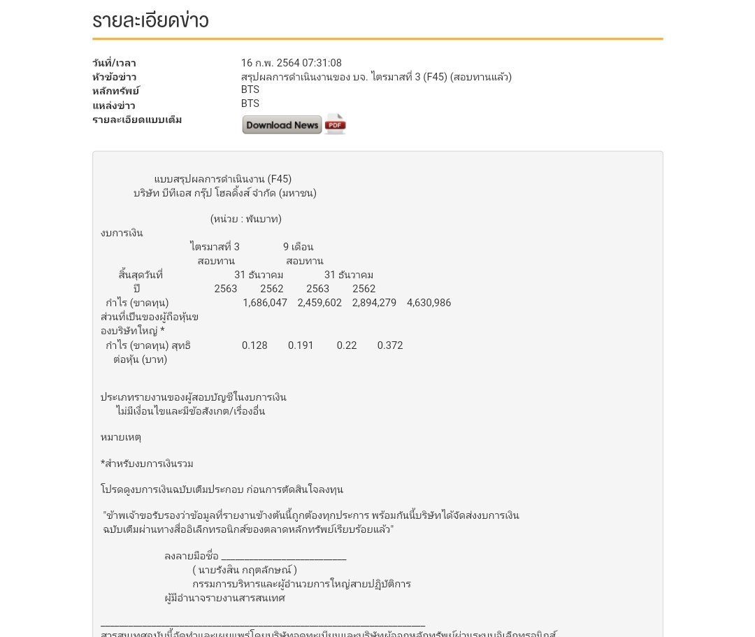 งบ BTS ครับ กำไรลดลงกว่าปีที่แล้ว