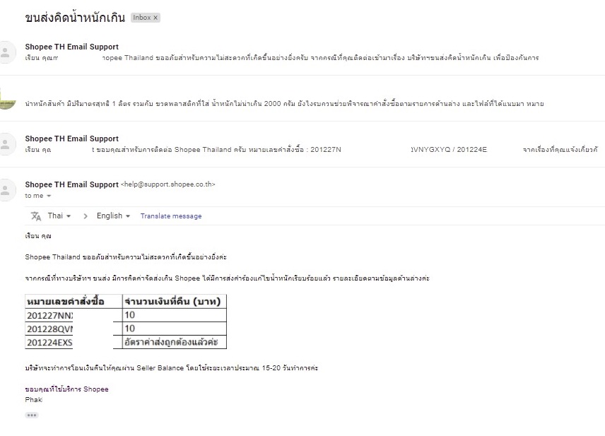 ต่อมาเดือนที่ 4 ทางร้านได้มาตรวจสอบออเดอร์ที่เสร็จสิ้น ปรากฏว่า ในบางคำสั่งซื้อ ทางค่ายส้มคิดค่าขนส่งจากผู้ขายเพิ่มผมได้ทำเรื่องเคลมค่าขนส่งจำนวน 30 รายการ