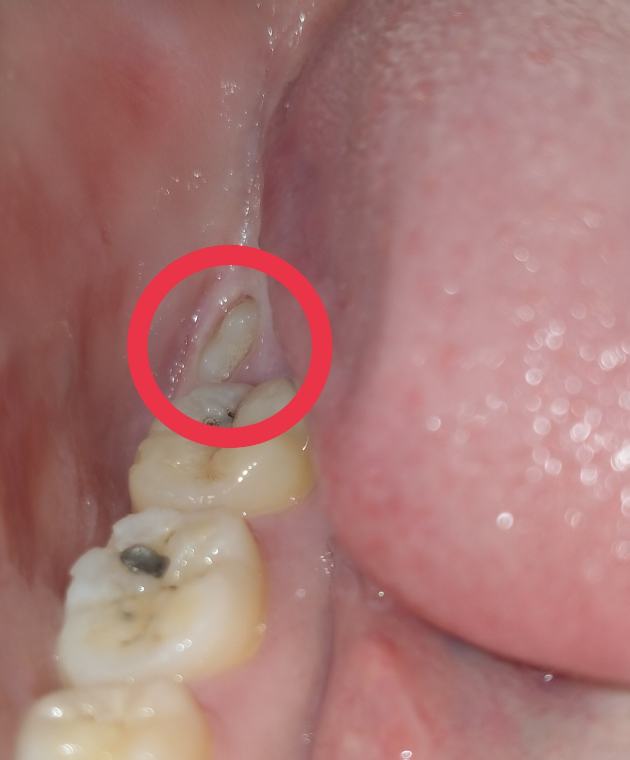 อันนี้ใช่ฟันคุดไหมคะ ตอนแรกปวดมีหนองตอนนี้ไม่ปวดแล้วแต่ตรงที่วงเหมือนมีฟังแข็งๆออกมา