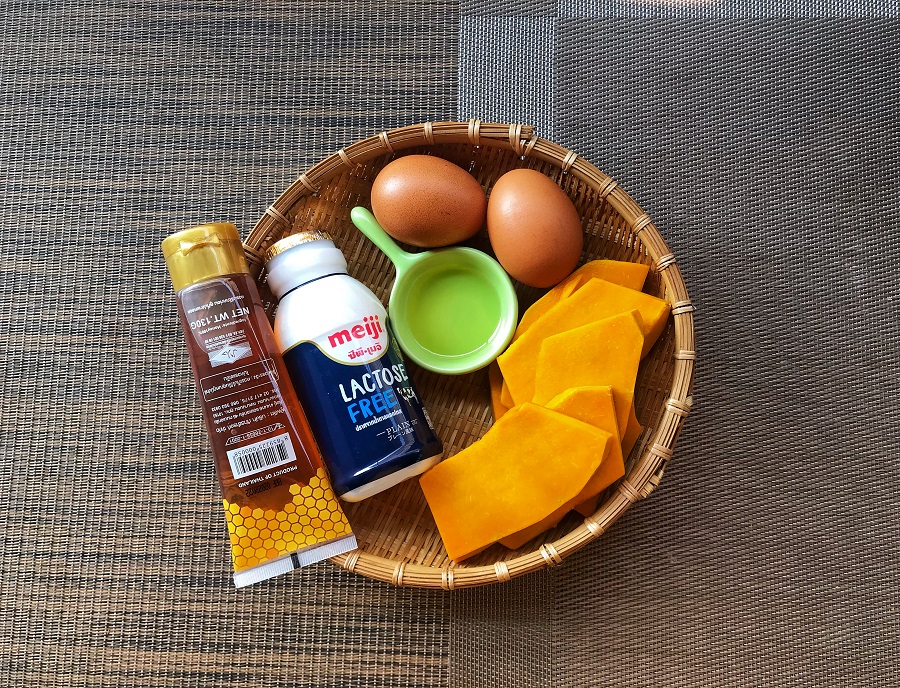 - เนื้อฟักทองนึ่ง 300 กรัม
