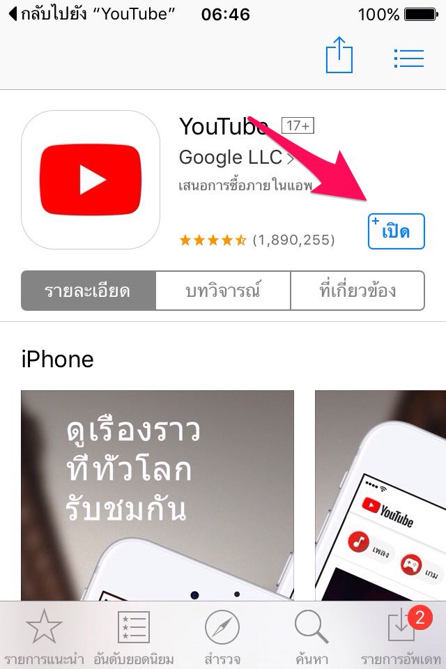 เล่นยูทูบไปได้สักพัก จะมีข้อความแจ้งขึ้นมาให้อั๊ปเดท ก็กดเข้าไปตรงอั๊ปเดท