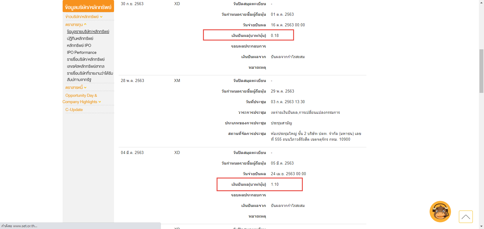 เรื่องเงินปันผล ดูจากเว็บ set อ้างอิง คำนวณยังไงครับ