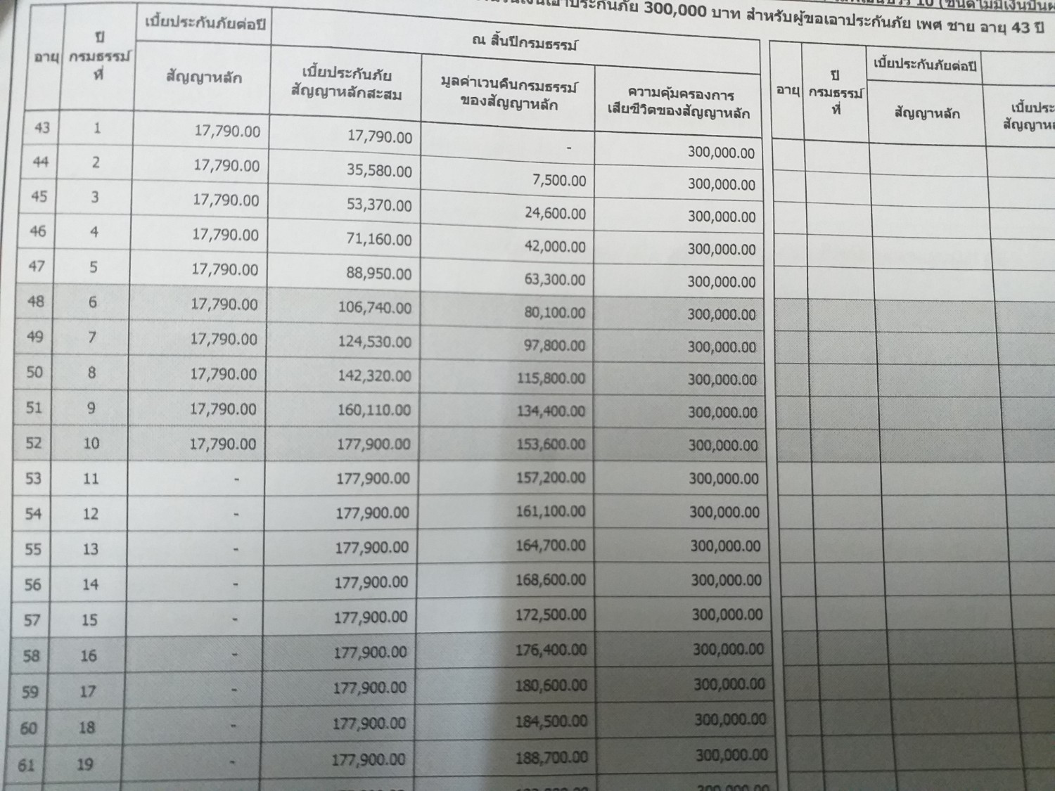 กำลังดูแบบ ประกันชีวิต แบบตายแล้วทิ้งเงินให้คนข้างหลัง จ่ายปีละ 17500 จ่าย 10 ปี ทุน 3 แสนคุ้มครองไปถึงอายุ 85.ขวบ