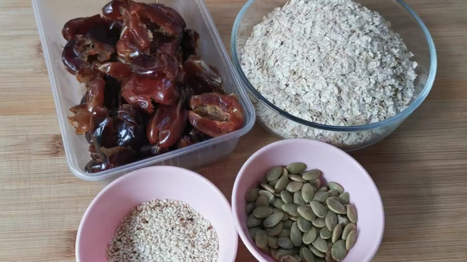 สูตรนี้แอนใช้ส่วนผสมแค่ 4 อย่าง หลัก ๆ คือ ข้าวโอ๊ตกับอิทผลัม ส่วนเมล็ดธัญพืช เพื่อน ๆ สามารถปรับตามความชอบของตัวเองได้เลยนะ