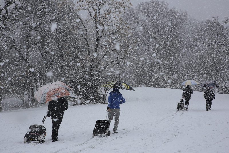 มองไปข้างนอกทุกอย่างขาวหมด หิมะหนาเป็นปึก