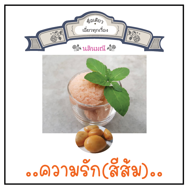 แป้ง เด็กสาวหน้าใสผู้รักและชื่นชอบความเป็นสีส้มอย่างมาก เพราะไม่ว่าจะของใช้ส่วนตัว ของใช้ในบ้าน หรืออะไรก็แล้วแต่ เธอมักเลือกซื้อสีส้ม
