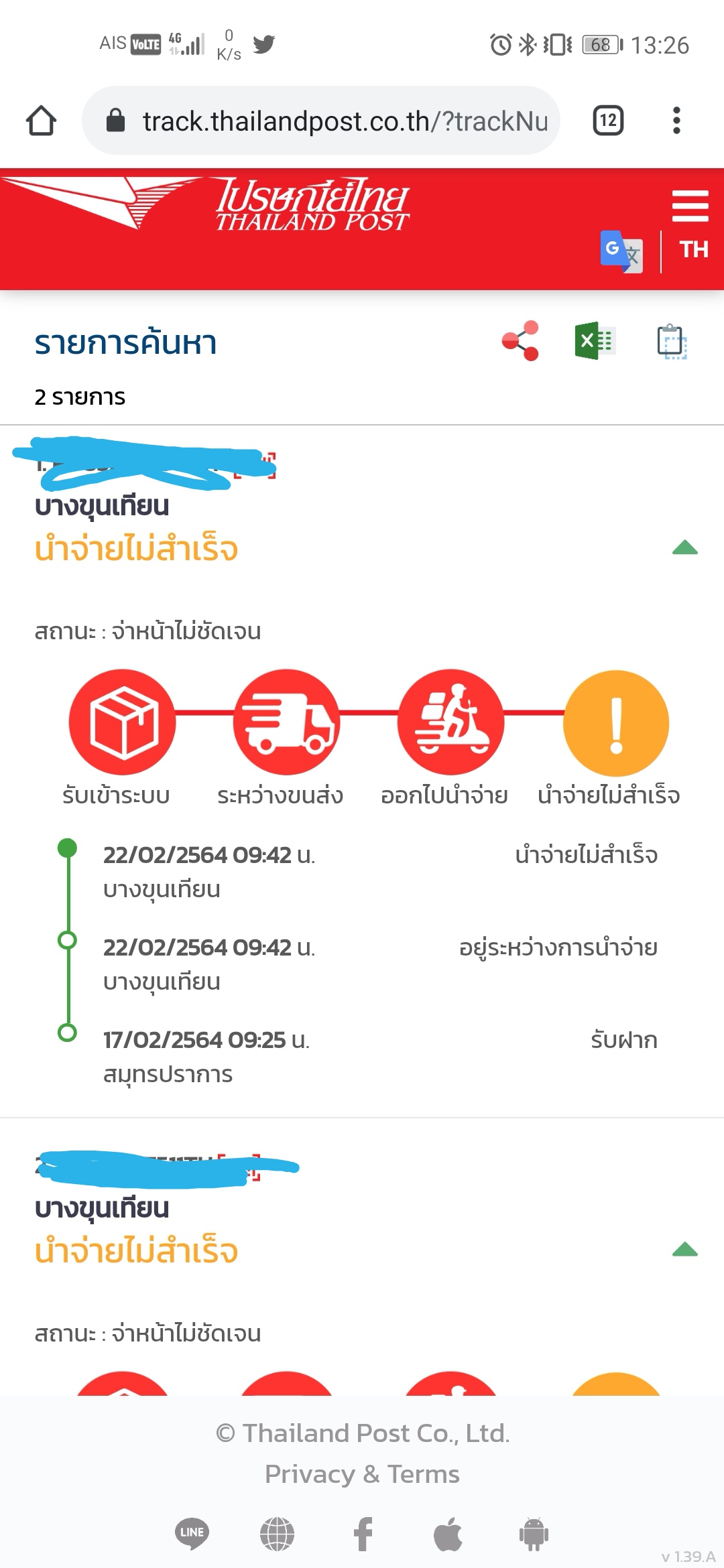 ขึ้นจ่าหน้าไม่ชัดเจน หรือ ขนส่งมีปัญหา