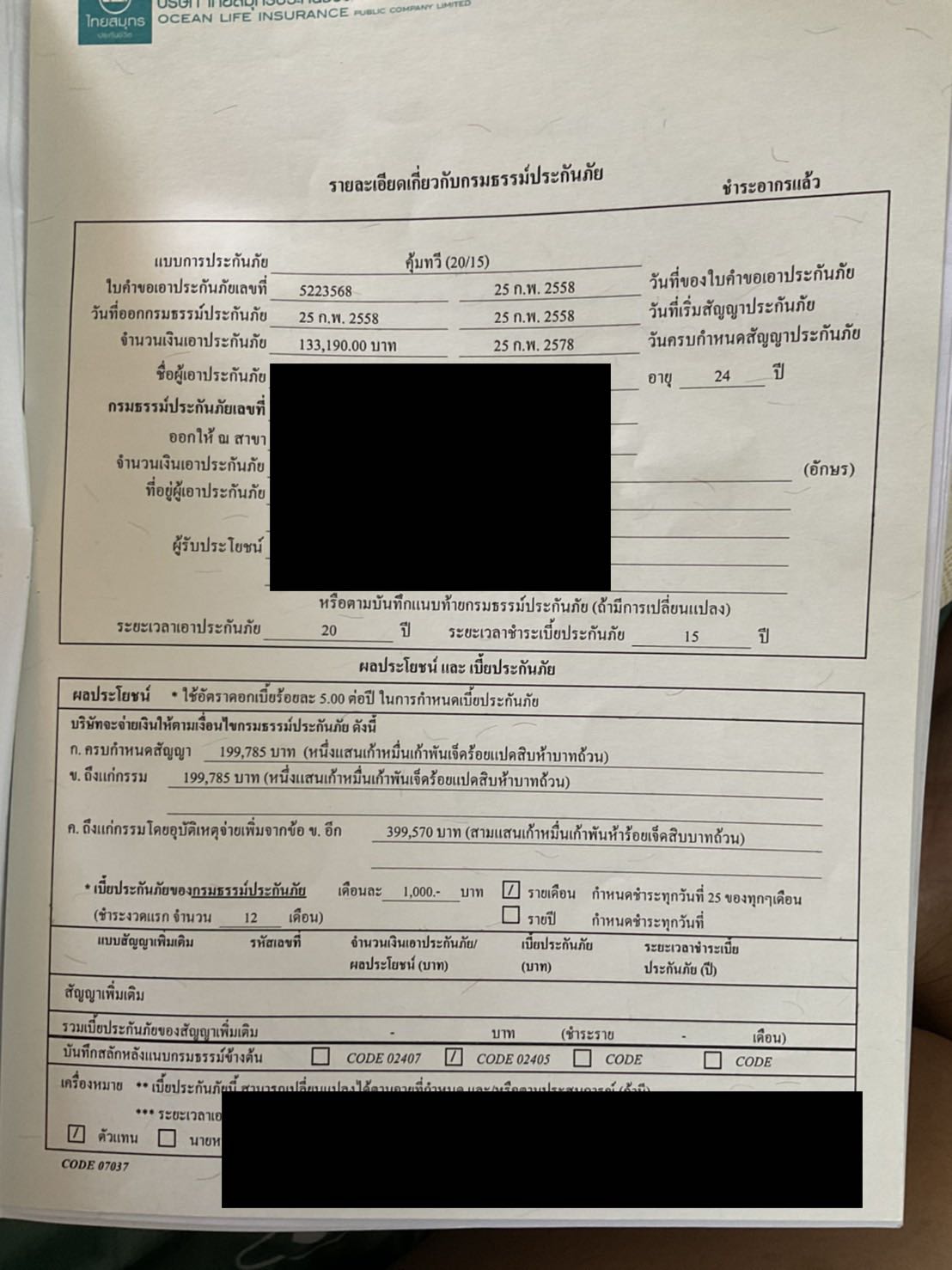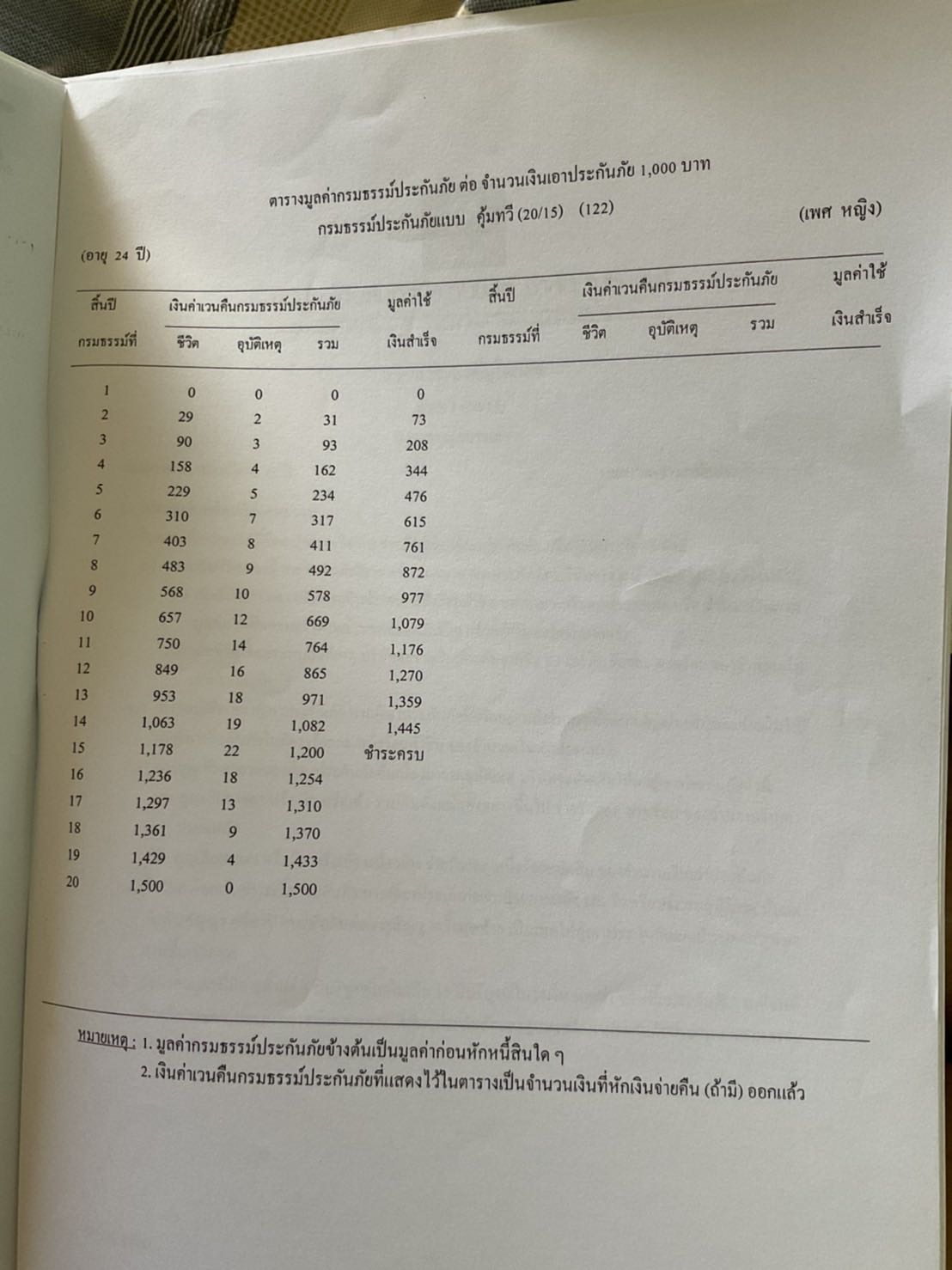 ขอวิธีคำนวณเงินเวนคืนประกันชีวิต
