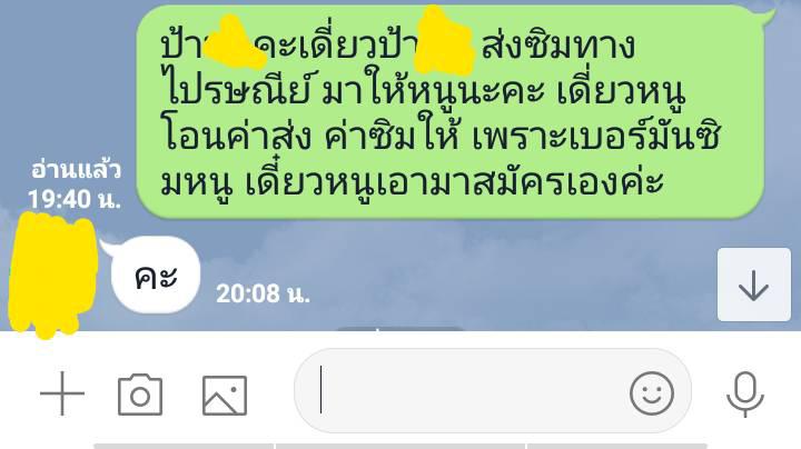 พ่อก็โทรหาป้าจุ้บแจงค่ะว่าทำไมเอาไปใช้แล้วไม่บอก ป้าก็บอกว่าป้าแค่ลองๆ ว่าใช้ได้ไหม เราก็คิดในใจว่า เอิ่ม ดูในโทรศัพท์ก็ได้นิ ทำไมต้องไปกดใช้ พ่อก็บอกว่าต้องเอาซิมมาคืนนะ ไม่คืนโทรไปหาโรงเรียน อจ้งทางผอ. แล้วป้าจุ้บแจงก็คงหางจุกตูด จะมาวันนี้เลยค่ะ จะเอาซิมมาให้