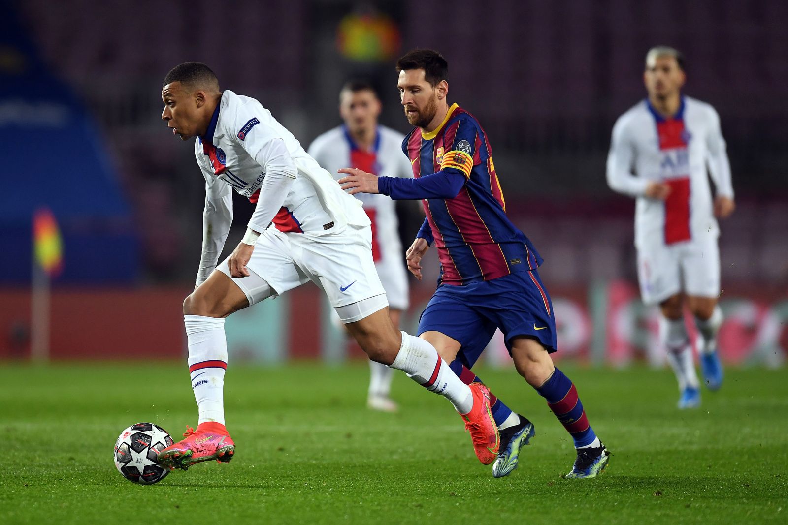 เอ็มบัปเป้ ซัดแฮตทริกในเกมที่ "เปแอสเช" ไล่ต้อน "เจ้าบุญทุ่ม" บาร์เซโลน่า 4-1 ที่สนามคัมป์ นู ขณะที่ ฮาแลนด์ โชว์ฟอร์มดุดันไม่แพ้กันเมื่อเขาจัดการซัด 2 ตุง และทำ 1 แอสซิสต์ ในแมตช์บุกอัด เซบีย่า สุดมันสกอร์ 3-2