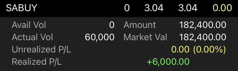 จะว่าได้ราคา 3.12 ก็ไม่น่าจะใช่ เพราะผมตั้งซื้อตอนเช้า พอได้แล้วรีบตั้งขายเลย มันจะเร็วถึงได้ราคาเปิดเชียวหรอ